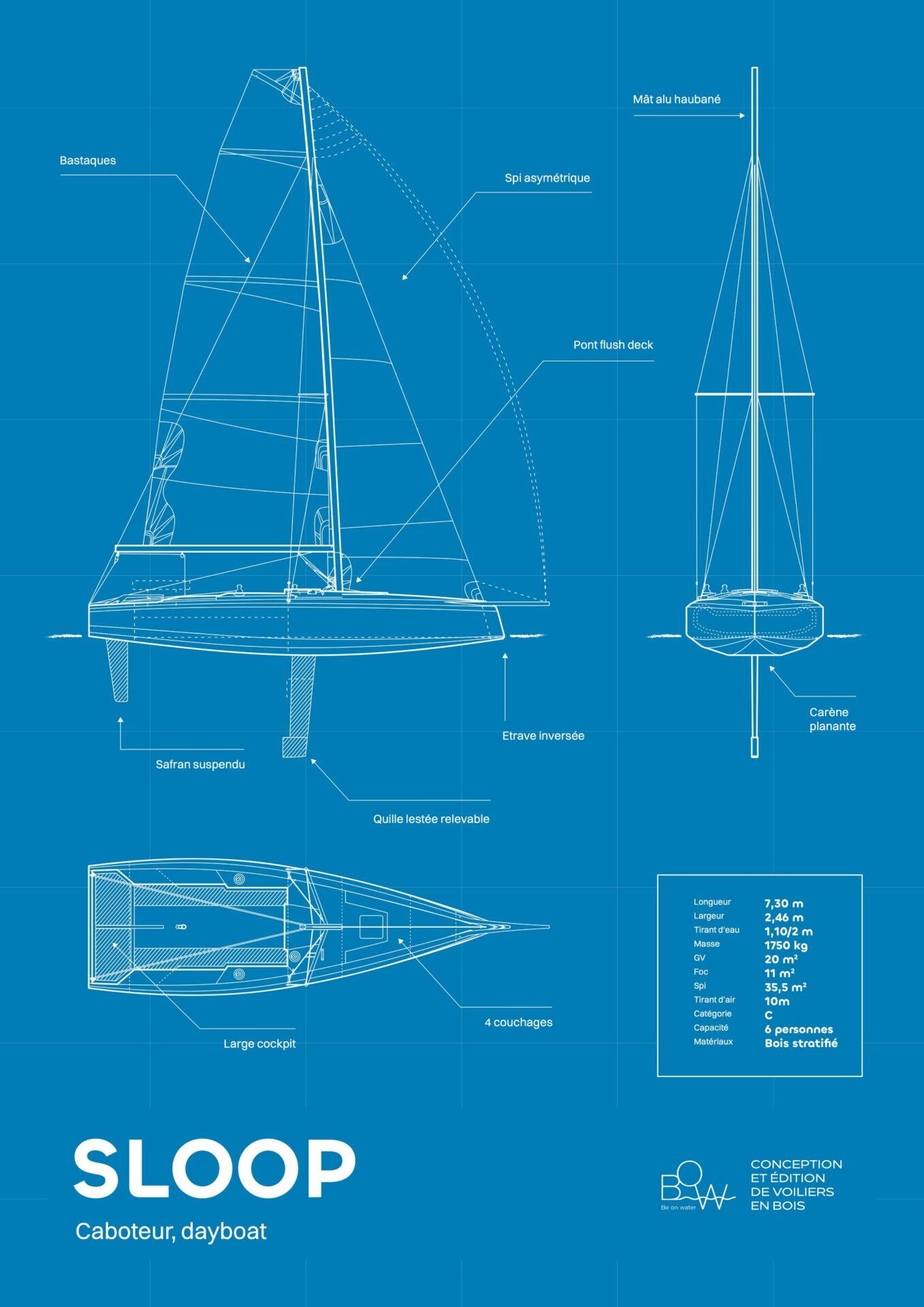 Grand-frère de la Pram, le Canot est imaginé pour partir à l’aventure en équipage de 2 à 3 personnes et découvrir les baies, les îles et les ilots de nos côtes.